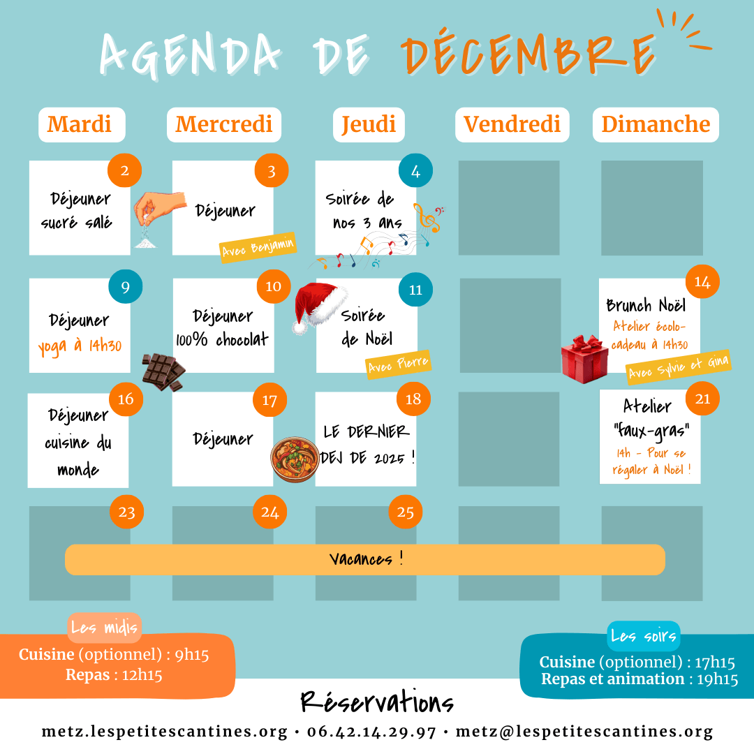 2025年3月30日Voici le portrait de Léo, en service civique dans notre cantine depuis janvier.Et merci à Anais,...2024年6月3日Ce mercredi 5 juin, ainsi que le mercredi 12 juin à 14h, Laurent vient nous proposer un atelier d...Le temps file à toute vitesse et il se passe plein de choses aux Petites cantines... Peut-être y ...Plus d'articlesRecevez notre newsletter