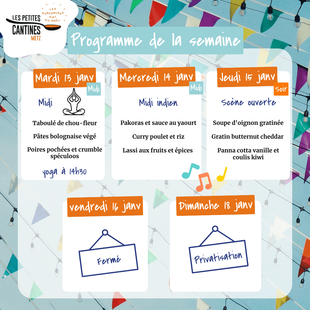 Pour une meilleure expérience en cantine, merci de bien respecter votre horaire de réservation lors de votre venue. Nous réservons le droit de ne pas accepter votre animal de compagnie.